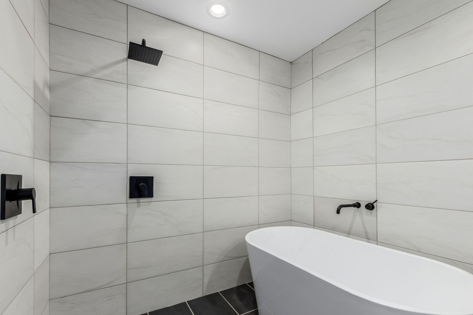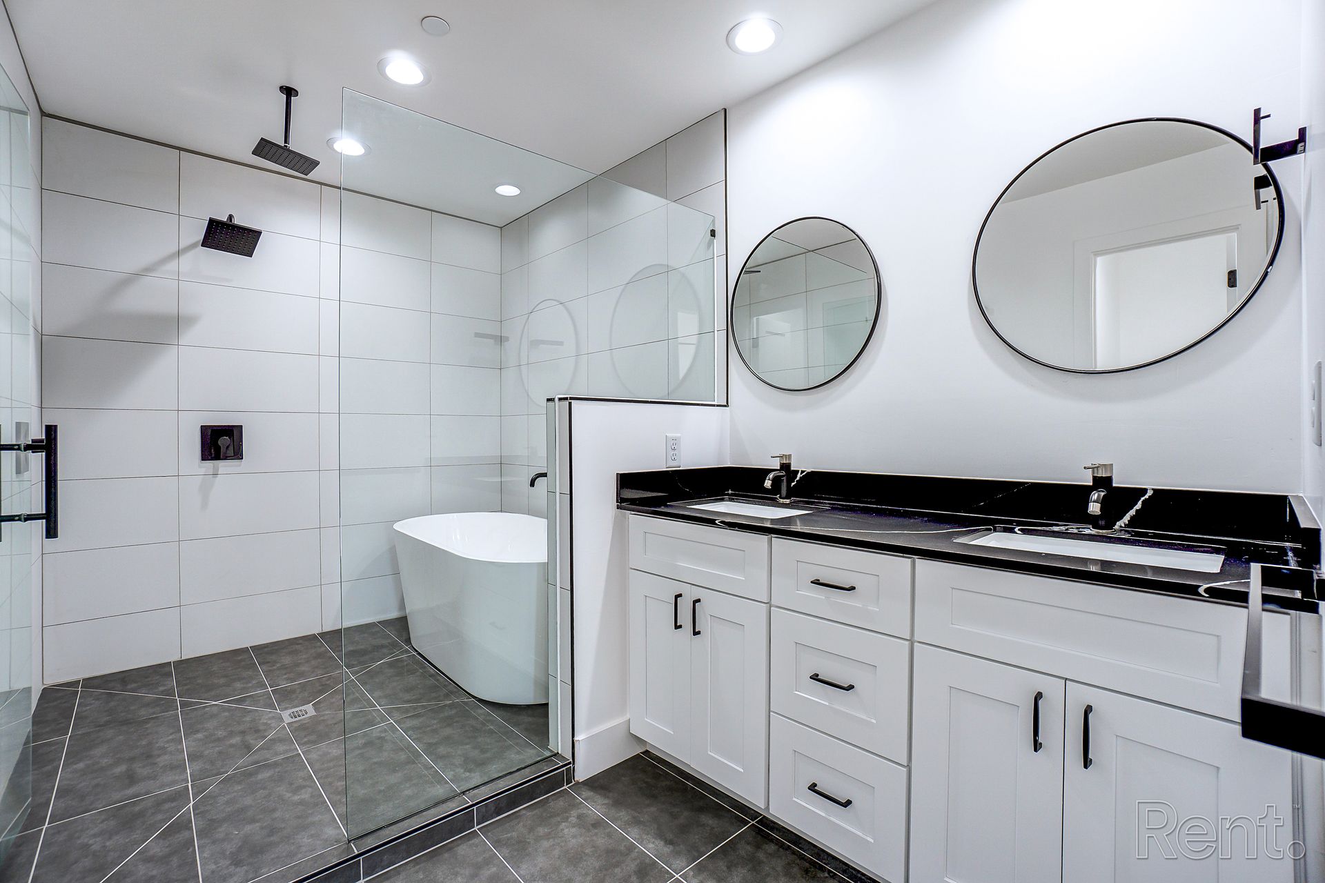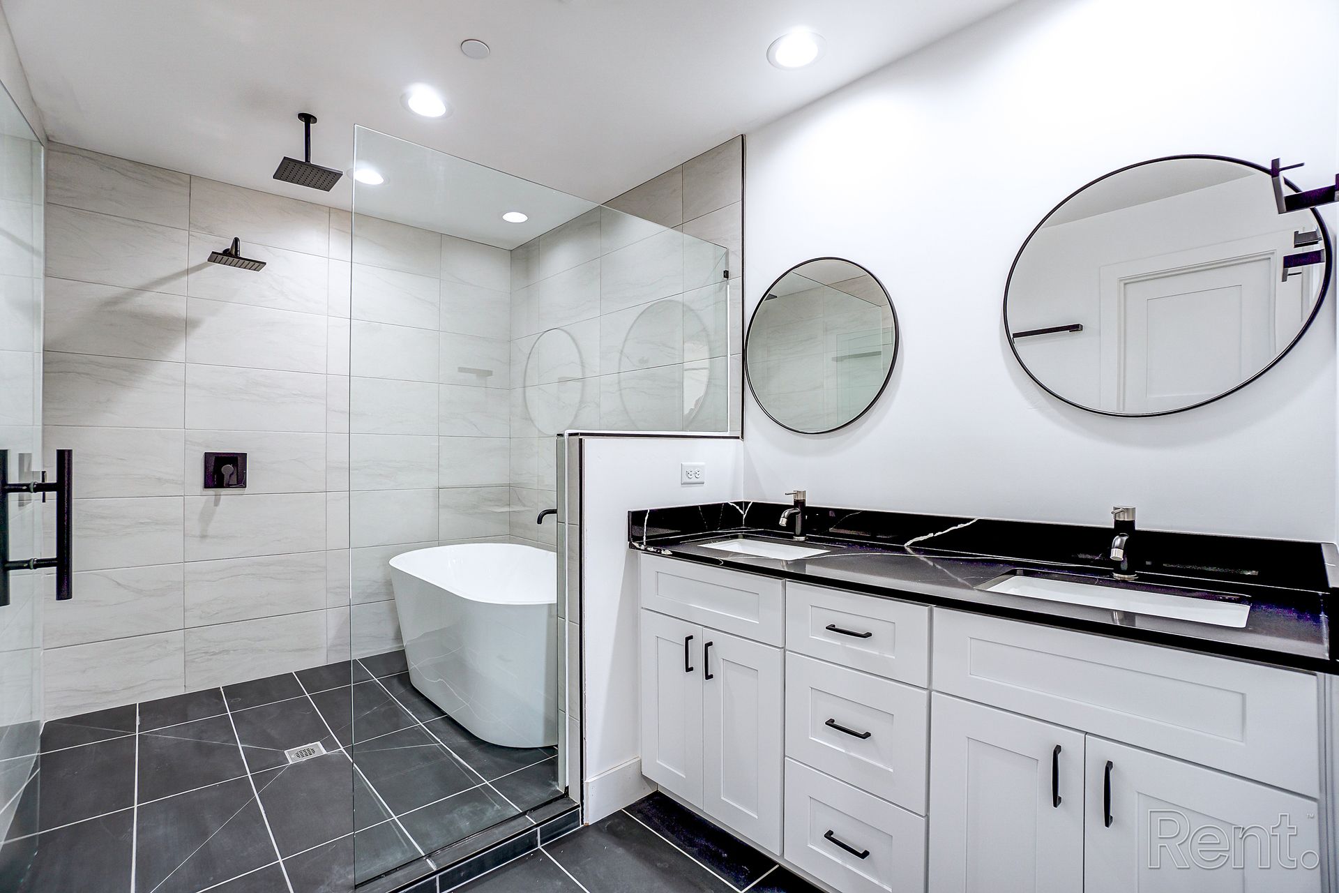 Spa-style bathrooms featuring an oversized soaking tub and dual-head walk-in shower