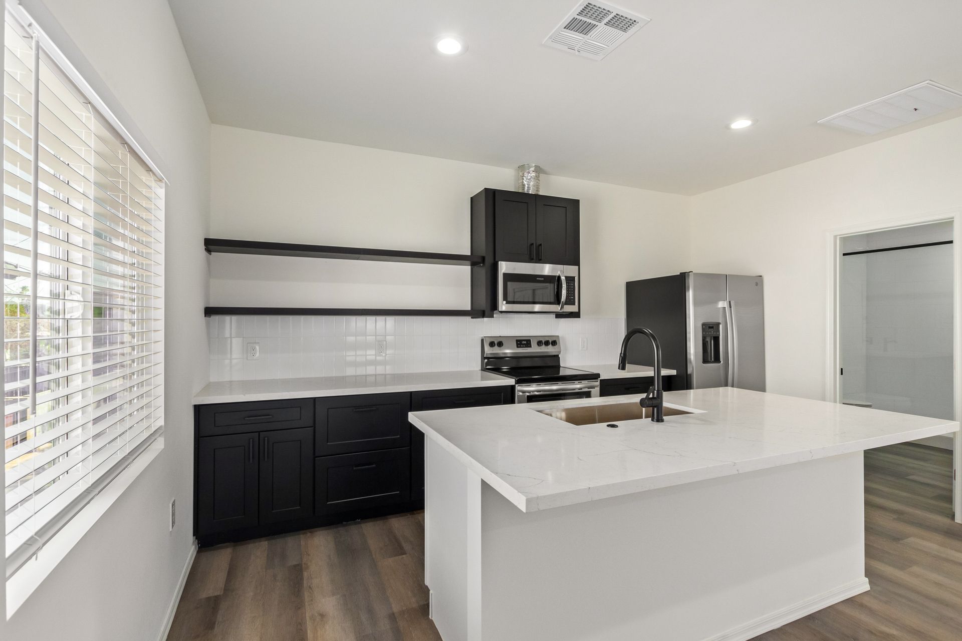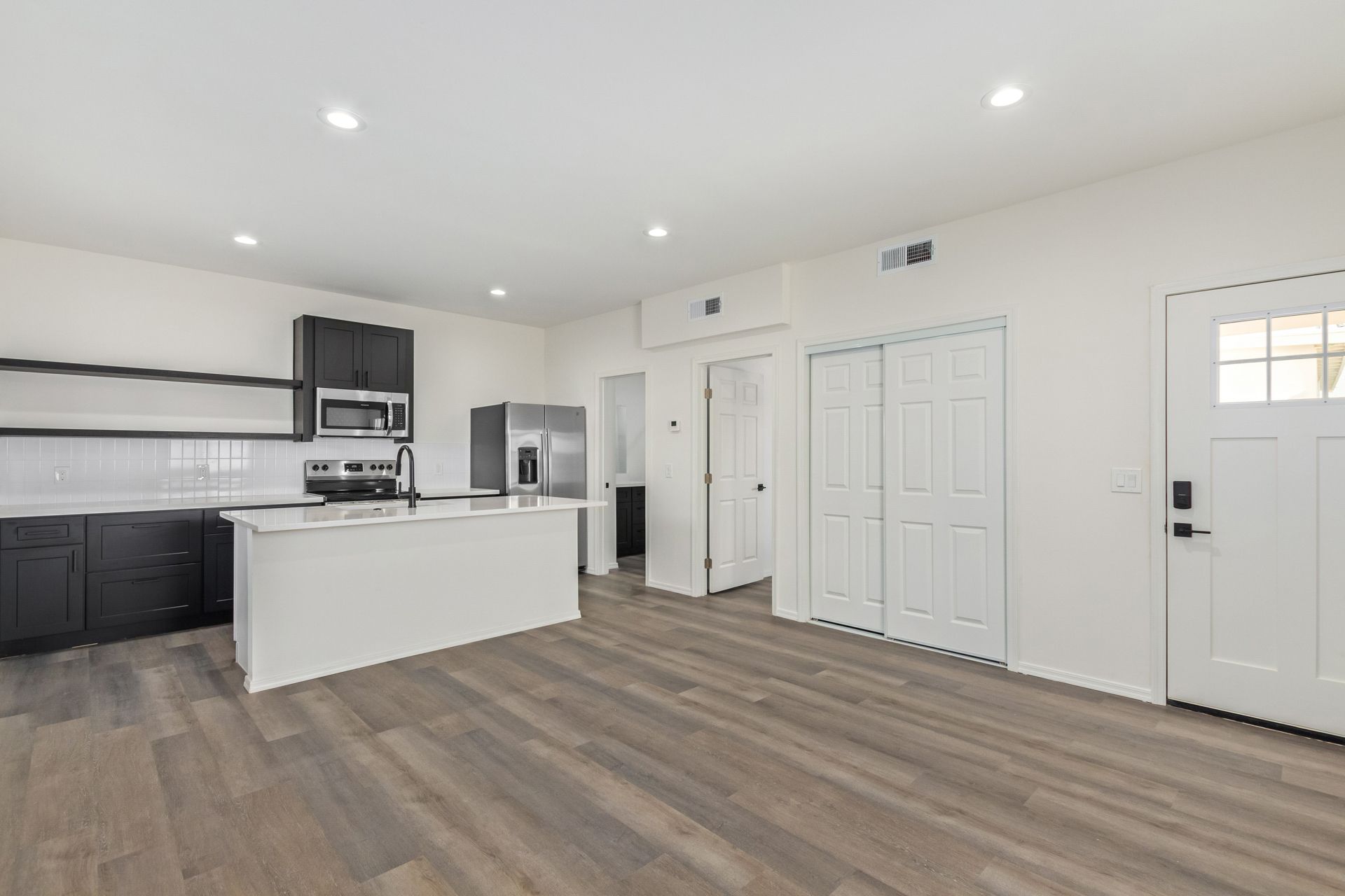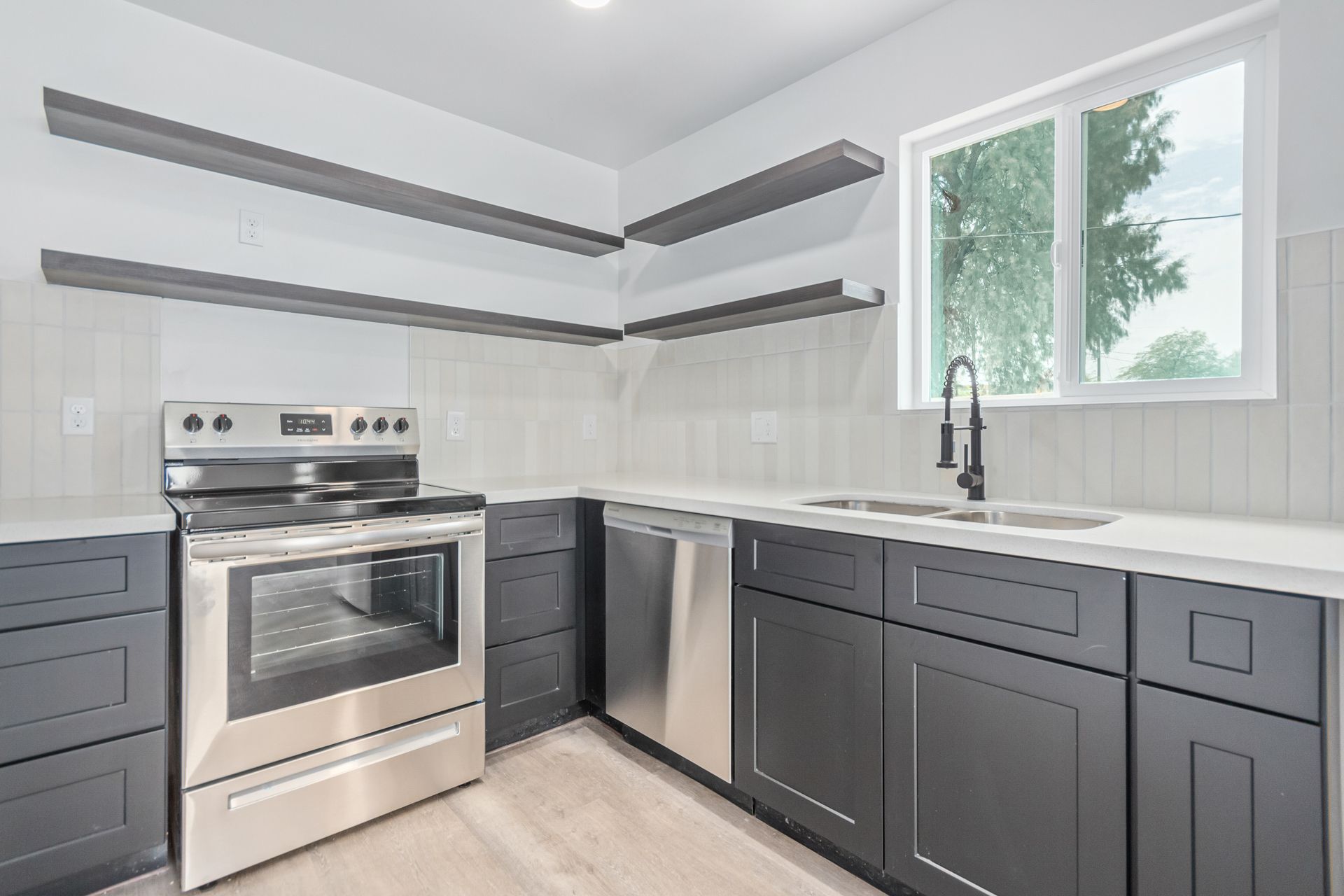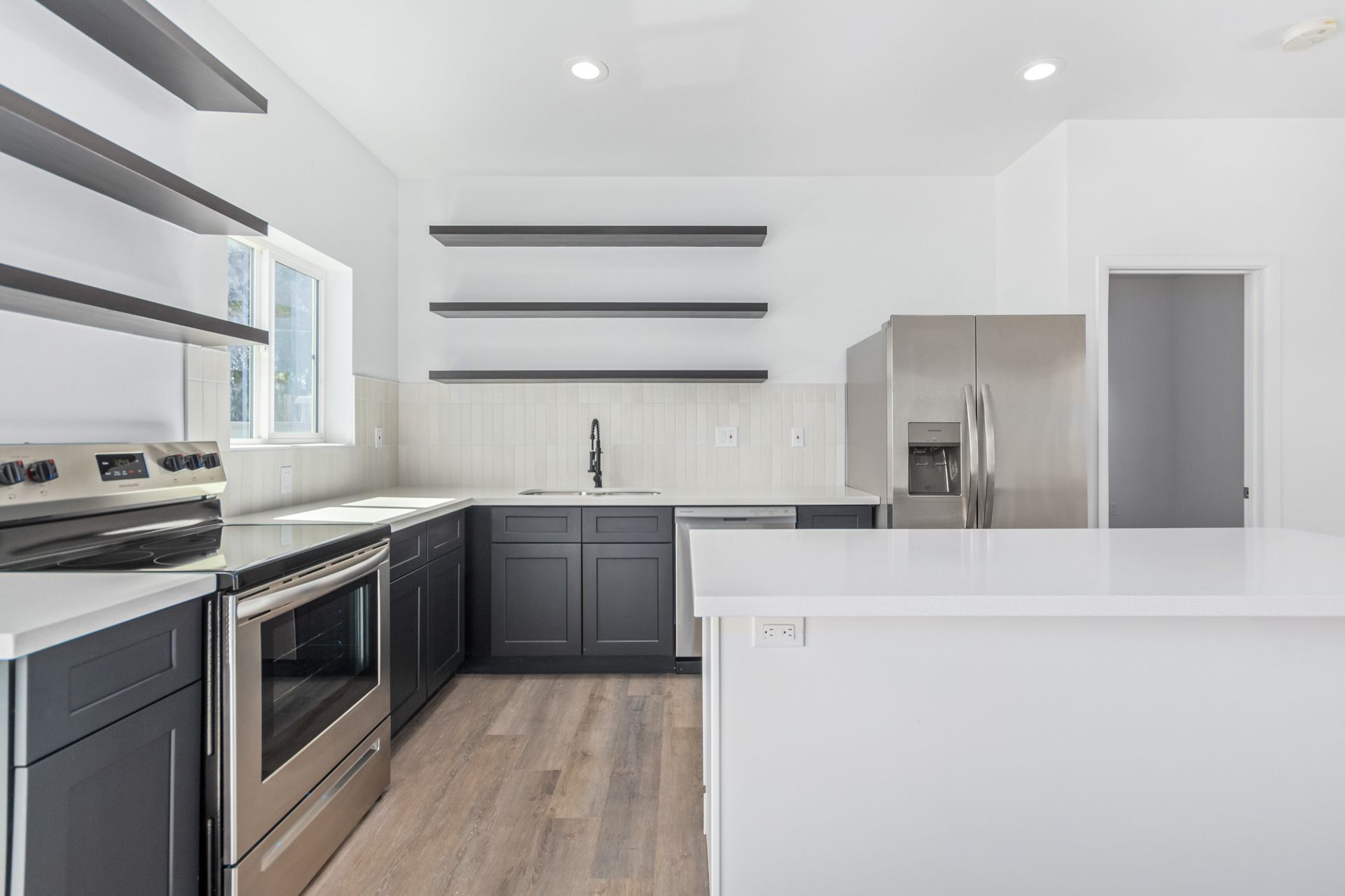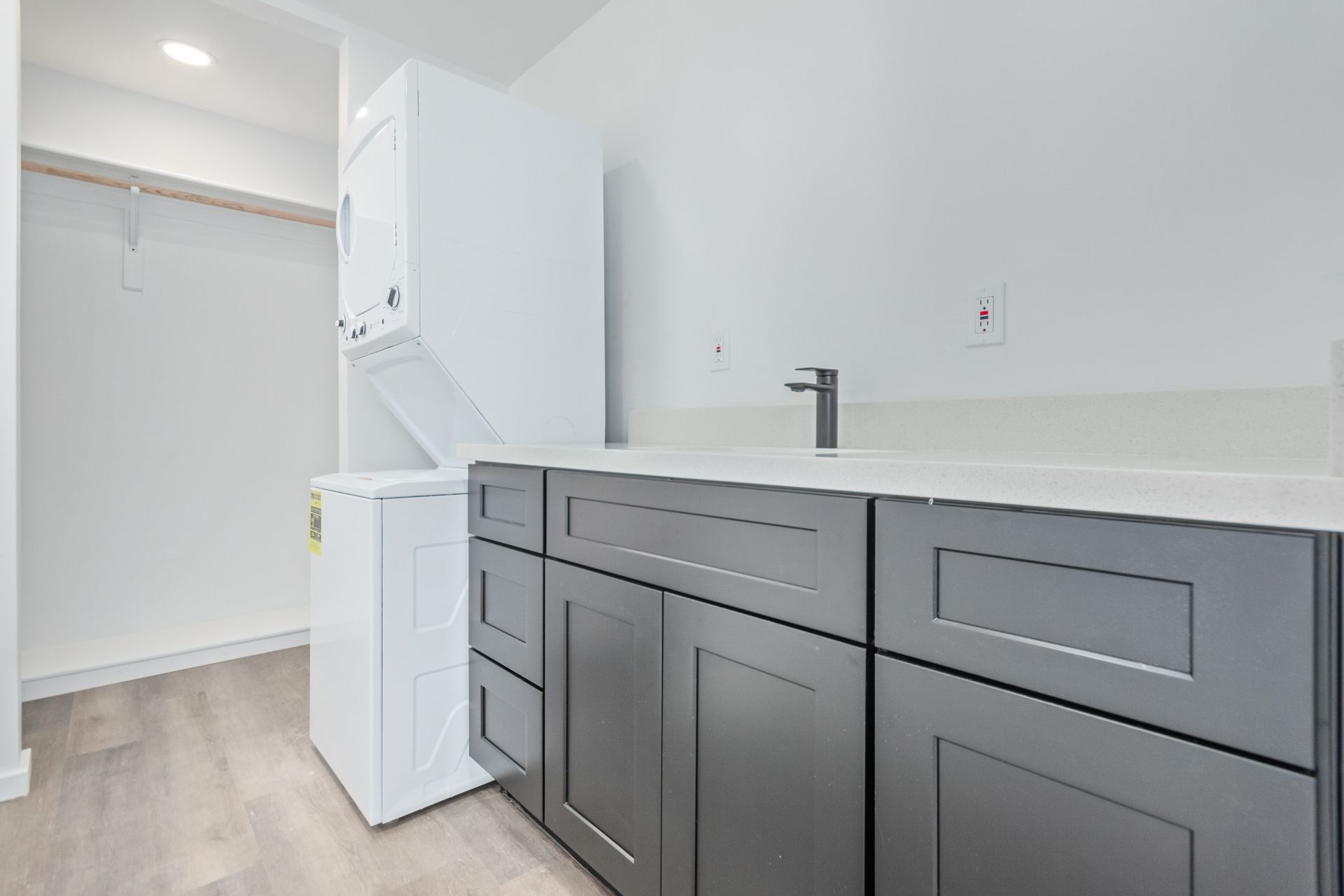 Each home offers modern, open-concept layouts with upscale finishes including white quartz countertops, tile backsplashes, floating shelves, black shaker cabinets, and stainless steel appliances. Enjoy the convenience of in-home washer/dryers and a beautifully landscaped shared lawn with a grill. Dedicated parking is included for all homes except the studio, which uses street parking.