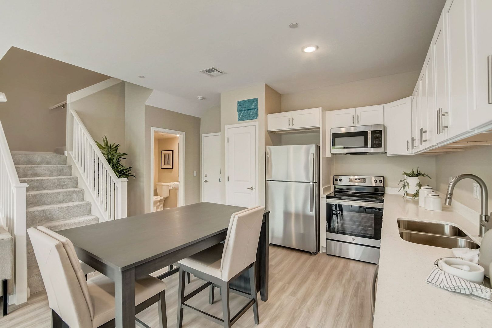 Welcome to Parkview Townhomes, a boutique community of just 27 residences in the heart of Surprise, AZ. This spacious 3-bedroom, 2.5-bath floor plan offers 1,420 square feet of well-designed living, highlighted by a large laundry space that adds everyday convenience. Inside, enjoy modern finishes like quartz countertops, stainless steel appliances, luxury vinyl plank flooring, and spa-inspired bathrooms. Outside your door, take advantage of private entrances, fenced front yards, and attached two-car garages. Plus, you’ll love the resort-style amenities—sparkling pool, BBQ grills, outdoor lounge areas, and a private dog park. Parkview is where practical comfort meets elevated living!