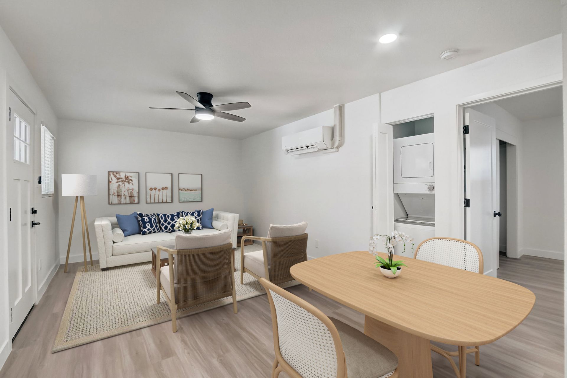 Our community has been fully renovated. From elegant wood plank flooring to the convenience of an in-home washer and dryer, every detail has been carefully curated. Our kitchens boast expansive white cabinetry, subway tile backsplashes, and white quartz counters, all accented with sleek black hardware and a convenient pull-down faucet. And with a full stainless steel appliance package, your culinary dreams are complete.