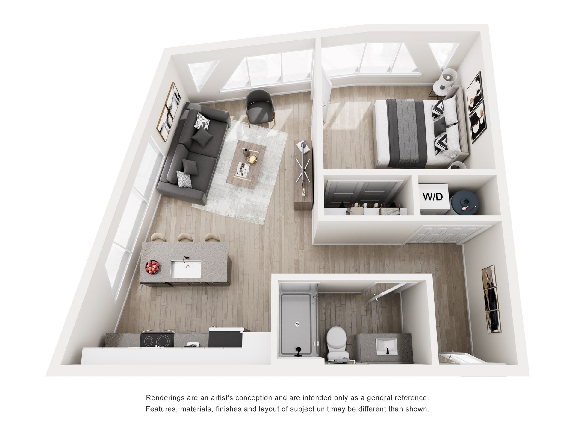 Perfectly scaled for modern city living, our one-bedroom residences offer a refined retreat in the heart of the Roosevelt Road district. These brand-new apartment homes feature open-concept layouts designed to maximize space, light, and functionality. Luxury vinyl plank flooring flows throughout, while high-end kitchens showcase quartz countertops, custom cabinetry, and stainless steel appliances. Expansive windows bring in abundant natural light, creating a bright and energizing atmosphere. Each home includes an in-unit washer and dryer for added convenience.