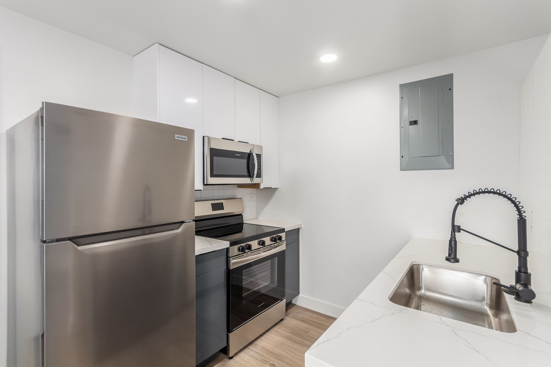 Each renovated apartment offer a range of desirable features, including spacious open floor plans, open kitchens with subway backsplashes, and contemporary high gloss, full overlay, two-tone cabinetry.