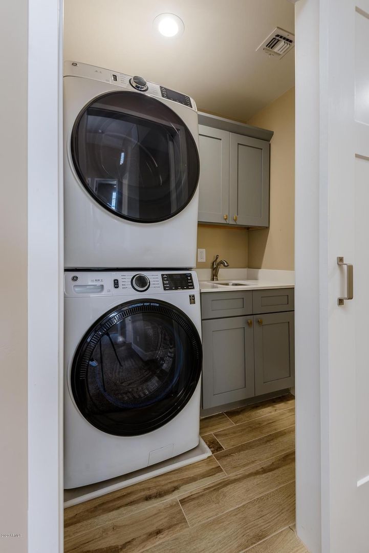 This beautifully designed property offers a host of high-end features, including a spacious balcony perfect for outdoor relaxation, a sleek coffee bar and wine cabinet in the master suite, and a striking 3-panel sliding transparent door that floods the living area with natural light. Enjoy the warmth of wood-look tile flooring, elegant quartz countertops, and premium GE stainless steel appliances paired with modern shaker cabinets.