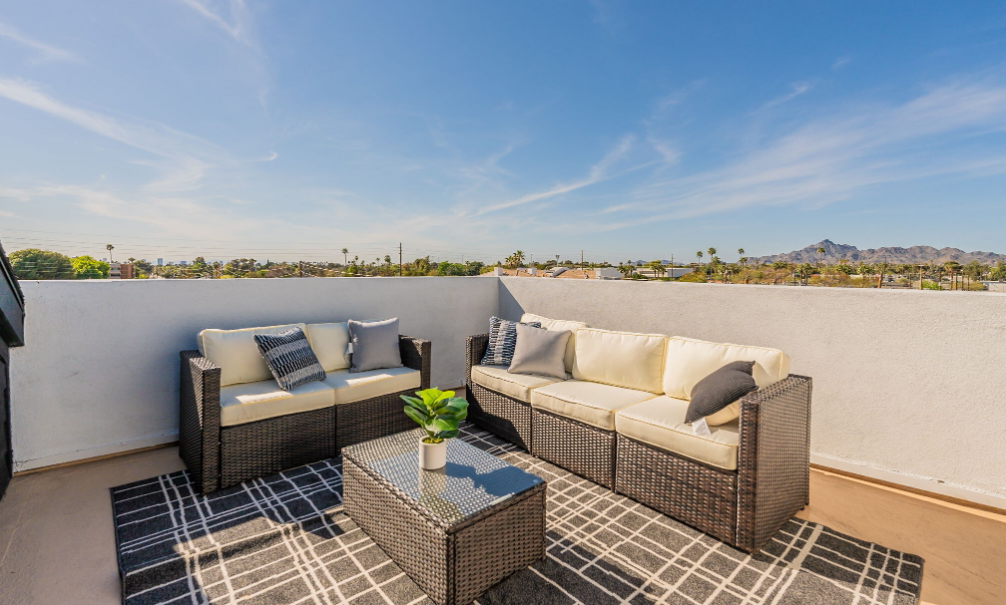 Welcome to Earll 18 Townhomes in Phoenix, AZ, where luxury meets convenience. Our townhomes feature top-of-the-line amenities such as stainless steel appliances, quartz counters, and tile backsplash in the kitchen. Enjoy the convenience of having a washer and dryer included in every unit, as well as luxury vinyl flooring throughout. Each home also comes with an attached garage for easy parking and a private patio for outdoor relaxation. Take a dip in the sparkling swimming pool or host a BBQ in the community BBQ area. Experience upscale living at Earll 18 Townhomes - Phoenix.